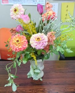1.シルクフラワーをアレンジし販売・レンタル 季節に合った造花をフラワーポットにさして製作します。さまざまなアレンジを用意しています。 |
