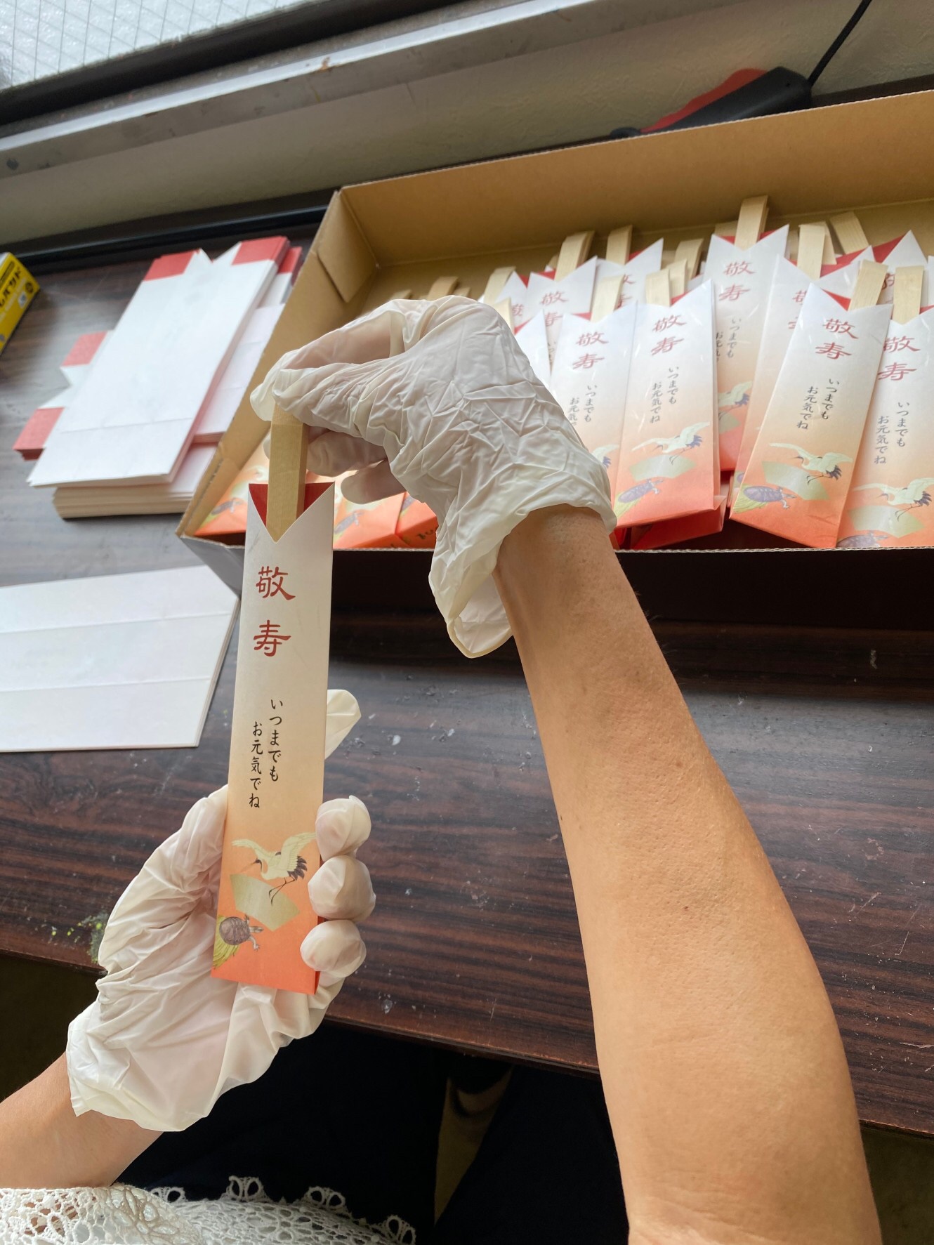 お箸の袋づくりをしています。